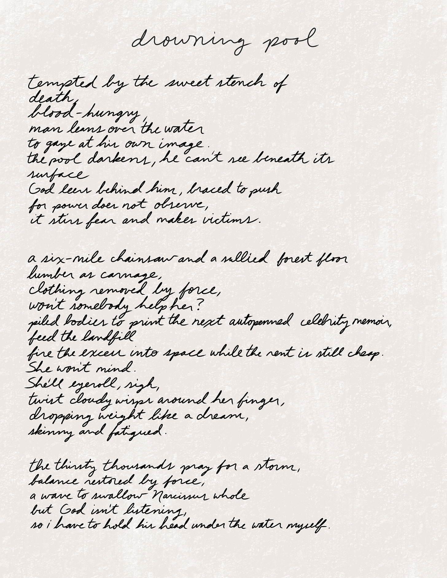 the pool darkens, he can’t see beneath its surface